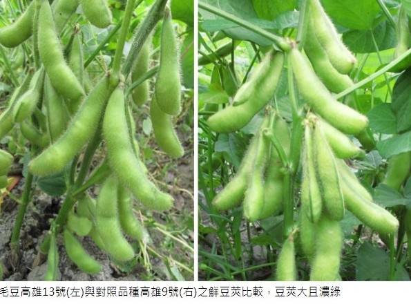 毛豆專家周國隆表示,「高雄13號」每公頃合格莢產量可達9.5至12公噸,比目前栽種面積最多的「高雄9號」增加1成左右,果粒又大,假以時日,可望再創「台灣綠金」新版圖。