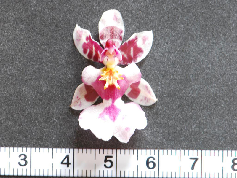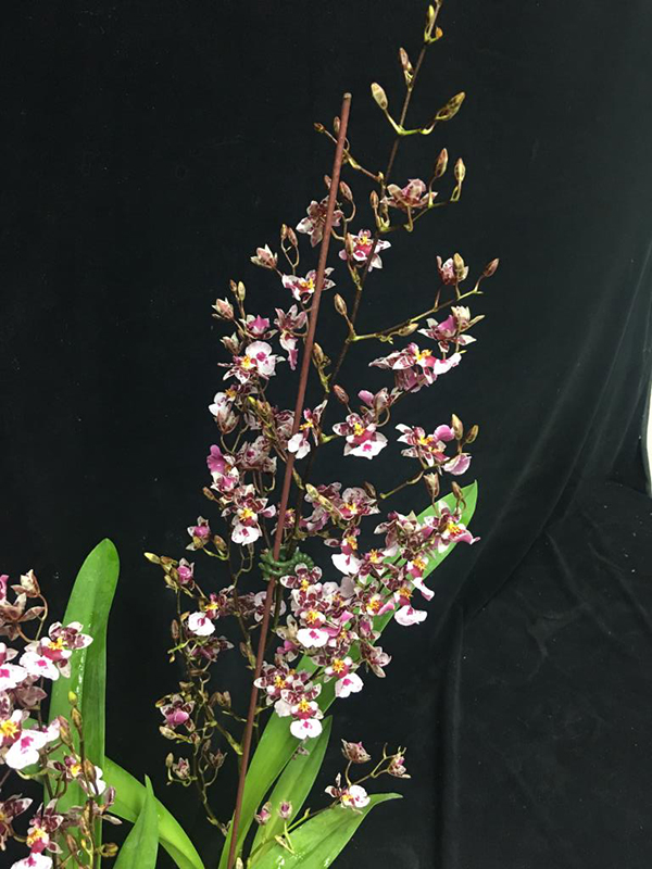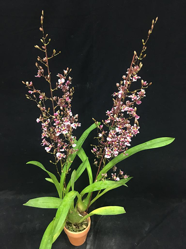 本品種屬於中型花品種,花粉白色,帶有桃紅色塊斑,花梗直立,植株高度50公分,花梗長約43公分,假球莖長5.5公分、寬3.0公分,每個假球莖抽1~2枝花梗,花期約1個月,花性佳,花朵長3.0公分、寬2.1公分,花朵數多,具香味,花穗位於植株上方,與株高配比佳,為優選盆花品種。