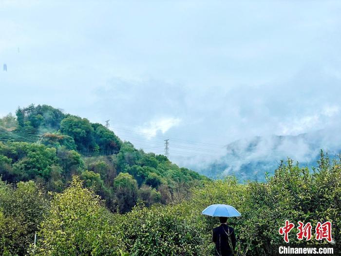 雨中的茶園雲霧繚繞。