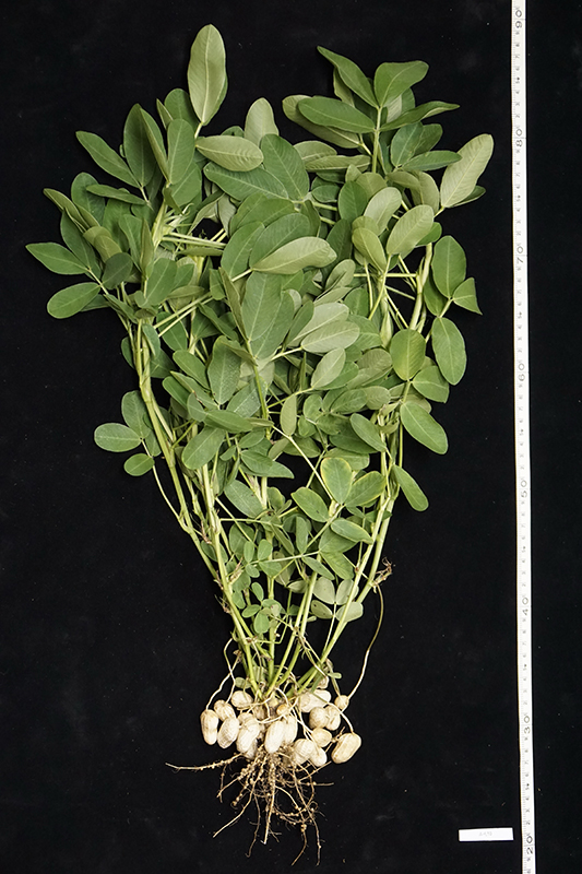 西班牙型(Spanish type),植株直立不易倒伏,二粒莢,莖綠色,花黃色,莢果果腰淺、果喙不明顯、網紋淺,種皮粉紅色,分支數約3~6支,葉形為橢圓形。