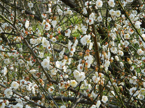 為重瓣早花品種,著花繁密,花蕾扁球形、白色。花型碟形,花瓣3層18片,花徑2.5mm,花色白。萼片5片帄展,綠色,花梗短,雄蕊抱心,與花瓣等長,雌蕊一枚。花期早,盛花期1月中旬,花量多,有香味;會結果,平均果重6.5公克。