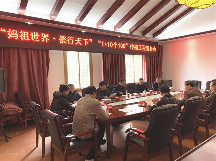 2月25日,由中華媽祖文化交流協會、福建德化縣陶瓷發展委員會、恒豐佳創有限公司等發起的“媽祖世界·瓷行天下”“1+10個100”傳播工程籌備會議在莆田媽祖文化研究院舉行。