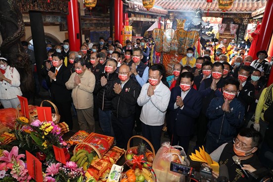 因疫情延後舉辦的新港奉天宮媽祖元宵遶境,27日上午由縣長翁章梁等人點燃起馬炮後,媽祖聖鑾沿著街面和6個庄頭出發,展開為期1天的遶境祈福。在疫情已有趨緩及俄烏戰爭、烏國百姓受苦之際,翁章梁祈求媽祖保佑台灣平安,世界和平。