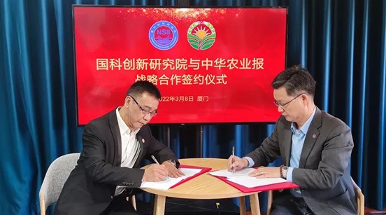 3月8日下午,在廈門集美區國科創新研究總部,中華農業報社與國科創新研究院舉行戰略合作協議簽約儀式。中華農業報社長陳穆諒、國科創新研究院院長李岳龍、執行院長鐘華應、副社長彭志宏、國科創新研究院鄉村振興發展中心主任黎國偉、國際交流中心主任林嫦華、農學穀福建分院院長周小立等出席簽約儀式。
