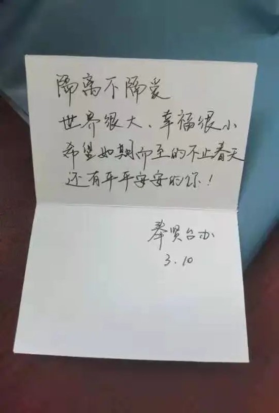 近期,返滬臺胞人數呈上升趨勢,在奉賢區隔離的臺胞時刻牽動著區台辦的心。在臺胞最需要關懷的時刻,奉賢台辦“娘家人”及時給予他們最真摯的問候,讓他們真切感受到家的溫馨和“兩岸一家親”的濃厚氛圍。
