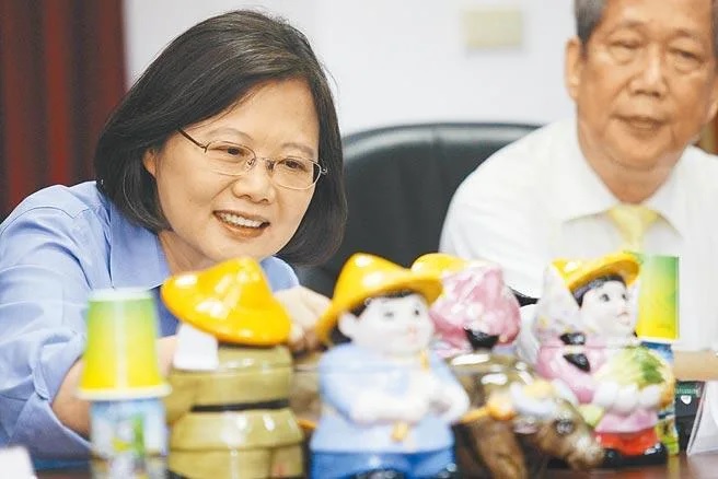 農委會預告《農會法》修正,將增列中央主管機關指派專業理事。中華民國農會總幹事張永成表示,中央假藉修法介入農會自治,根本是強取豪奪人民團體的經營模式。圖為蔡英文2015年拜會新竹農田水利會時,把玩桌上的玩偶。(本報資料照片)