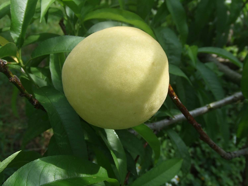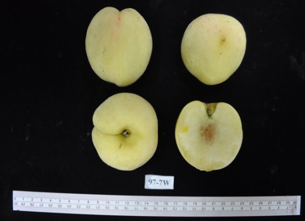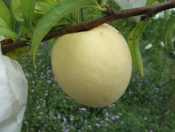 本品種為4月中旬成熟的白肉硬溶質水蜜桃,果形大而圓整,平均果重126公克,成熟時果皮不著色,冬季休眠所需低溫量約為100cu (chilling unit),為可在台灣低海拔地區種植的早生桃品種,可避開5月份果實蠅危害高峰期及梅雨季造成果實品質低下的缺點。