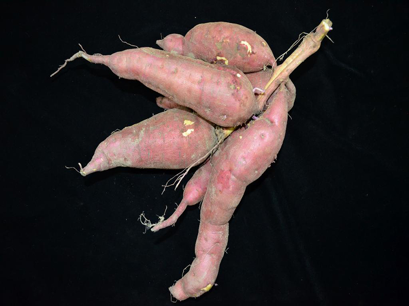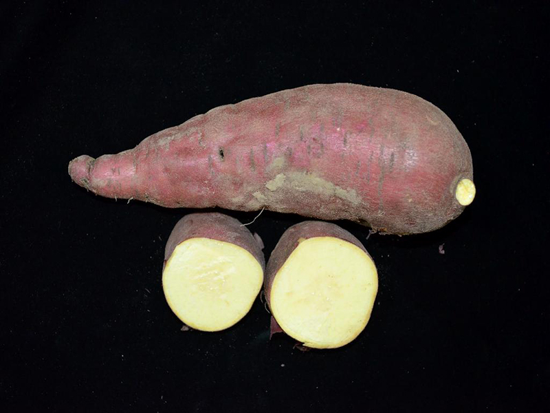 本品種株型為半直立型,莖蔓節間粗短,綠色,無茸毛,分株少;葉色為綠色,葉大小為大,頂葉綠色,葉柄綠色。塊根形狀為短紡錘形,表皮為紅色,肉色為黃色。開花期自10月至12月間,花色為淡紫色,植株開花少。本品種具耐儲藏及食味佳之特性,適合外銷用途。