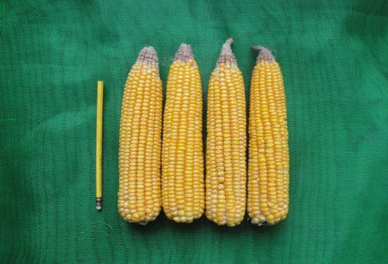 本品種為硬質玉米(飼料用玉米),莖色及鞘為綠色,莖基部為紅色,葉片深綠,葉片數16片,花葯黃色,穎色及花絲淡紅色,果穗之苞葉包裹完全,果穗成熟期間,植株上半部葉片尚為綠色時,籽粒及苞葉快速脫水,採收時去苞容易。每株穗數1-2枚,籽粒行數14-16行,籽粒屬馬齒型橘黃色。