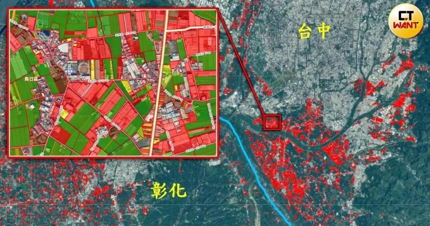 民眾從農委會的網站可查閱疑似農地違章工廠的位置,中南部未登記農地工廠的數量龐大。(CTWANT合成圖/翻攝自農委會網站)