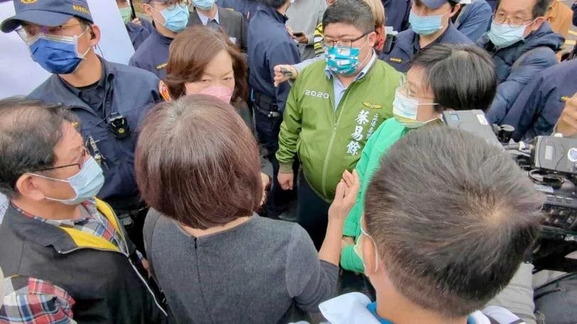 立委蔡易餘(中)、林岱樺及蘇治芬陪同「全國農產業群聚弱勢工廠自救會」前往行政院陳情。