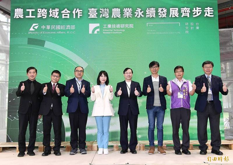 經濟部致力智慧農業,將目前最新25項智慧農工科技與循環設計成果,於溪州公園舉行「溫室 效應.一日限定實驗圖書館」展出活動,經濟部次長林全能(右4)、立委謝衣鳯(左4)等人與會。