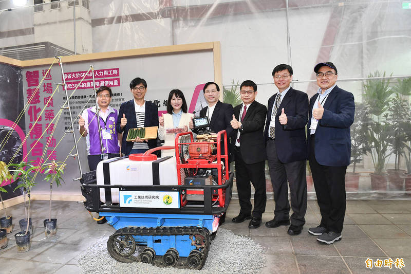 電子操作的智慧化複合式巡場噴藥移動裝置,可節省6成人力和工時,降低30%農藥噴灑量。(記者陳冠備攝)