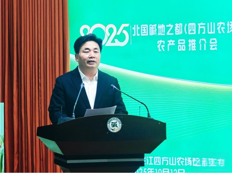 推介環節,四方山農場有限公司黨委書記、董事長孫慶昌展示了農場的「金色答案」。 「鄰里四方」「和農場」兩大品牌的鹼地產品成焦點。其中,鹼地有機小米被譽為北國鹼都“軟黃金”,檢測結果顯示,其蛋白質、鈣、鐵等指標顯著優於普通品種,富含天然礦物質與微量元素。四方山農場有限公司去年自籌142萬元建成小米加工生產線,日加工穀子8噸,實現從「種得好」到「加工得好、銷得好」的轉變。