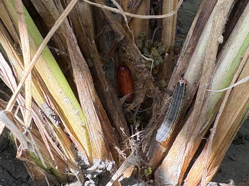 分秘夜蛾白日藏於稻叢基部,並在稻叢基部化蛹。