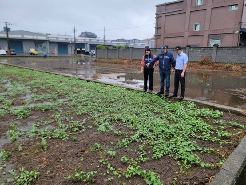 受到連日豪大雨影響,蘆竹區傳出農作淹水災損,桃市府農業局21日會同相關單位前往勘查。
