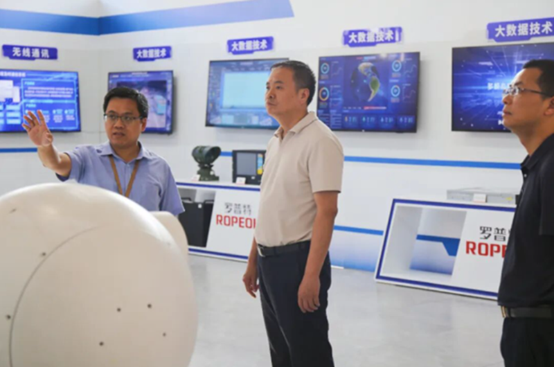 考察期間,楊傑書記一行走進羅普特智能展廳,詳細瞭解集團為政務、製造、安防等多領域研發的AI智能應用及實際成效。從數據可視化管理系統到傳統產業智能改造方案,展廳內的技術成果展示,直觀呈現了人工智慧從“技術研發”到“產業賦能”的轉化路徑。