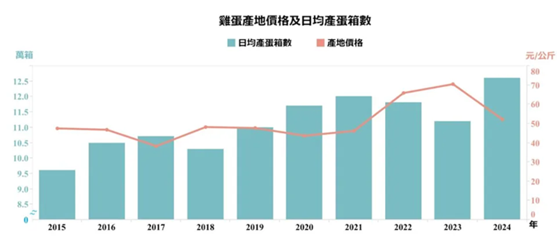 台灣雞蛋市場近年幾乎年年拉警報。2022年初至2023年春季,受低溫與禽流感影響,產蛋率驟降,國內兩度出現嚴重缺蛋,每日產量一度跌破11萬箱,蛋價飆新高,便利商店與賣場甚至限購。農業部其後啟動調節機制與復養補助,直到2024年中才宣告供需恢復平衡。