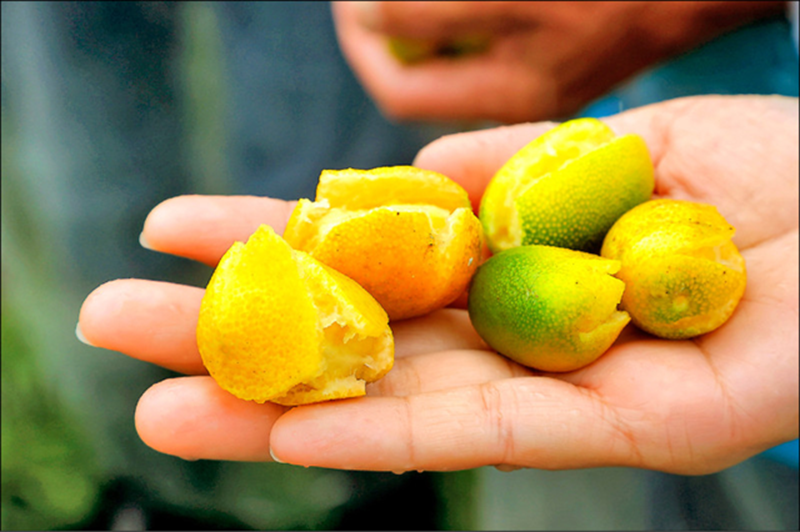 宜蘭金柑(金棗)再過一個月就要採收,受到風神颱風外圍環流及東北季風帶來的間歇豪雨影響,果實出現水傷、裂果情形,代理縣長林茂盛昨天到礁溪鄉金柑果園視察,指示縣府農業處掌握災情查報,向中央爭取農業天然災害現金救助。