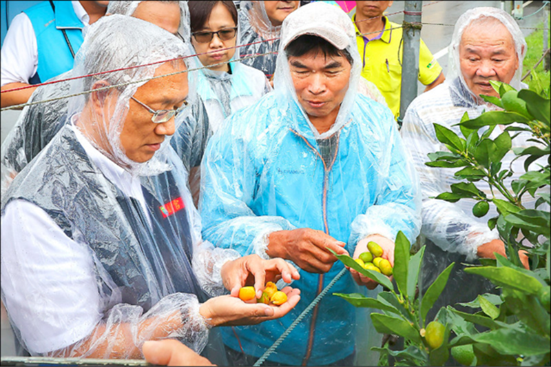 宜蘭縣代理縣長林茂盛(左)前往金柑果園視察,指示農業處掌握災情查報,向中央爭取天然災害現金救助。
