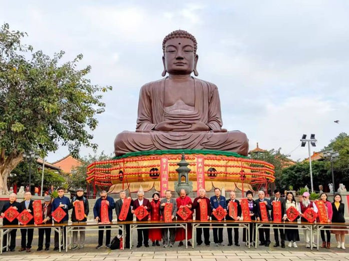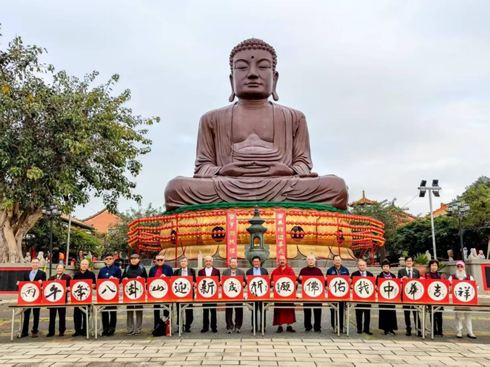 活動現場,18位兩岸各界代表共同揮毫書寫開筆主題「丙午年八卦山迎新歲祈願佛佑我中華吉祥」,蒼勁有力的筆跡在紅色宣紙上綻放,隨後全體代表於大佛前合影留念,定格下兩岸同心祈福的溫馨瞬間。彰化市前市長邱建富、彰化縣八卦山大佛風景區協會董事長張世良、臺灣藝術家總會總會長吳培基等兩岸嘉賓出席剪綵、致詞環節,眾多臺灣藝文界領軍人物齊聚一堂,為活動助力添彩。
