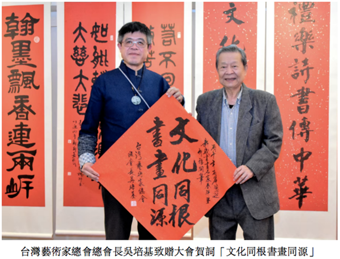 臺灣藝術家總會總會長吳培基致贈大會「文化同根書畫同源」賀詞,與李學明董事長的賀詞遙相呼應,共同傳達出兩岸藝文界對深化交流、共揚傳統的殷切期盼。