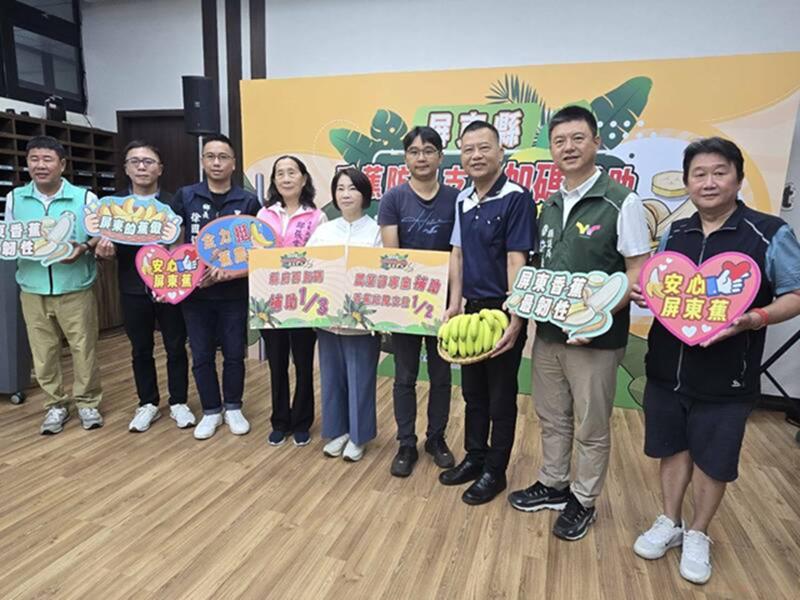屏東縣長周春米表示,屏東香蕉種植面積共計4082公頃,年產量約10萬336公噸,平均每公頃可種1700至2000株,產量占全台之冠,種植鄉鎮遍布全屏東,內埔、南州、新園、潮州、竹田、高樹、里港、鹽埔等鄉鎮,為外銷日本的主力,今年颱風及大雨造成香蕉受損2000多公頃,她去勘災時就明顯發現,有設置香蕉防風支柱的受損就少,沒有防風支柱的蕉園則是香蕉倒成一片,因此向農業部反映,農業部公告「114年農業天然災害農業部專案補助香蕉復耕作業程序」,取得114年農業天然災害證明文件之香蕉農友,且受災土地須取得產銷履歷或有機驗證,可請領補助之防風支柱為錏管(鍍鋅)及鋁鋅管(附帶防鏽烤漆),自即日起至本年10月31日止向受災土地所在地農會申請。
