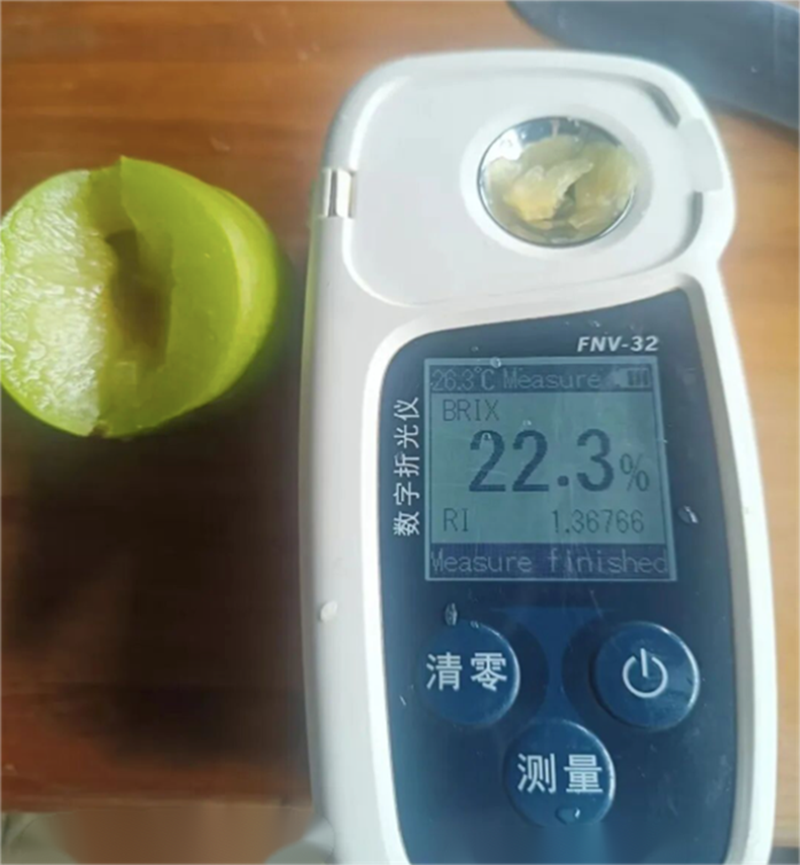 產量提升方面:技術團隊引入臺灣成熟的“產期調節”理念,延長蜂糖李掛果期,再通過科學疏花疏果,確保優質果實獲得充足養分,提升單果重量與品質。此外,專為蜂糖李研發的有機肥配方,有效改良土壤結構、增強肥力,為果樹生長提供充足營養。數據顯示,應用技術後,鎮寧蜂糖李每畝產量從傳統的約400斤躍升至1000斤,收成增幅達180%,讓果農“錢袋子”實實在在鼓了起來。