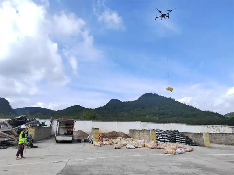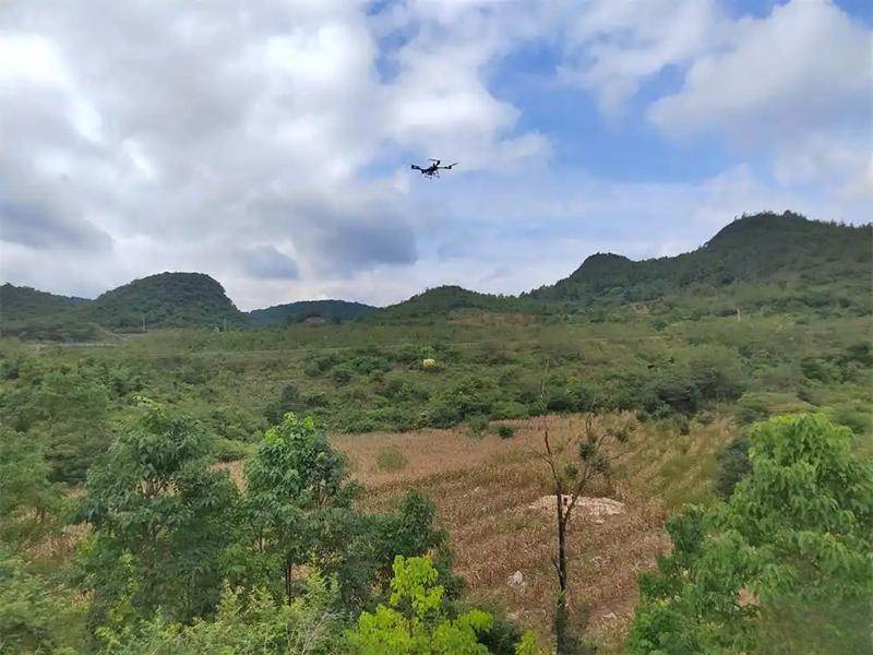 清晨的陽光灑在清鎮市王莊布依族苗族鄉螞蟥村的一片玉米地上,一袋袋金黃的玉米整裝待發。不過,這次,它們不是靠人力背馱,而是由一架無人機「拎」著,輕盈地飛越百公尺距離,穩穩落在集中點——整個過程,不到一分鐘。