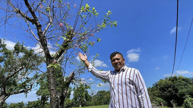 古坑農場負責人黃景鴻對園區櫻花在秋天開花也覺得神奇。