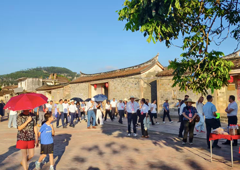 考察首站來到漳浦「藍氏三傑」故居,這裡的一磚一瓦都承載著跨越海峽的家國情懷。清代康雍乾年間,佘族英雄藍理、藍廷珍、藍鼎元憑藉「平臺、治臺、籌臺」的功績,在兩岸史上留下濃墨重彩的一筆。走進藍廷珍府第,108 間呈「回」字形分佈的廂房,巧妙詮釋著「團圓聚合」的美好寓意,讓人頗有感觸;遺存的2層碉樓,石砌底層與夯土上層相結合,牆寬近1米,獨特的建築風格中透露出當年的防禦智慧。