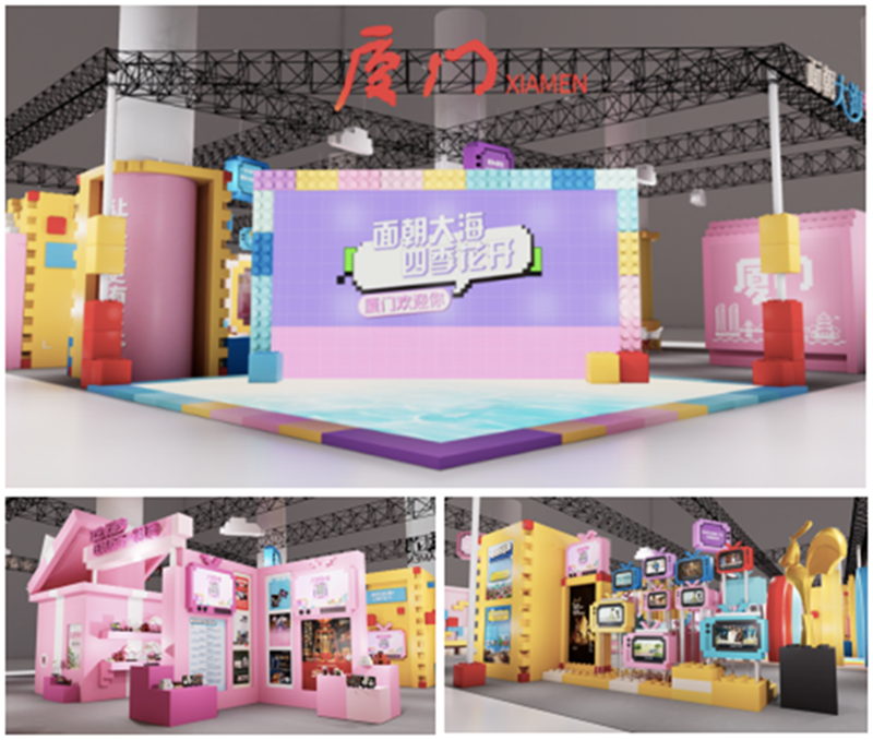 走進廈門館,仿佛踏入一座由創意拼接而成的「城市文化百花園」。一塊塊承載著三角梅、雙子塔等廈門文化符號的「積木」,不僅象徵著當地文化產業各領域的協同發展,更寓意著兩岸創意的共生共榮。正如參與設計的臺灣青年設計師林子軒所言:「積木的拼接沒有邊界,就像兩岸文化的交流從來都是你中有我、我中有你。我們希望用這種年輕人喜愛的方式,讓大家感受到兩岸創意的共同魅力。」