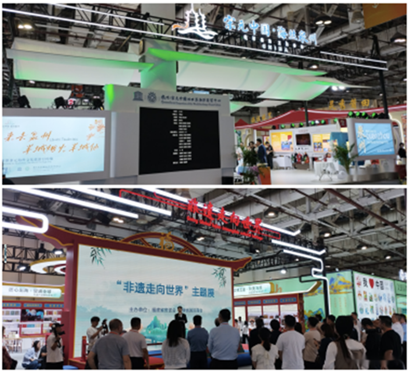 與此同時,泉州館的非遺空間同樣精彩。開元寺「東西塔」化身憨態可掬的木偶「阿國」和「阿仁」,現場「手舞足蹈」,萌化全場;觀眾可親身體驗簪花儀式,解鎖「蟳埔女」同款造型,感受閩南文化的獨特魅力。長達9米的德化陶瓷汽車雕塑,則以精湛工藝展現傳統陶瓷與現代設計的完美融合,讓臺灣參展者紛紛稱讚「大陸非遺工藝太驚人」。