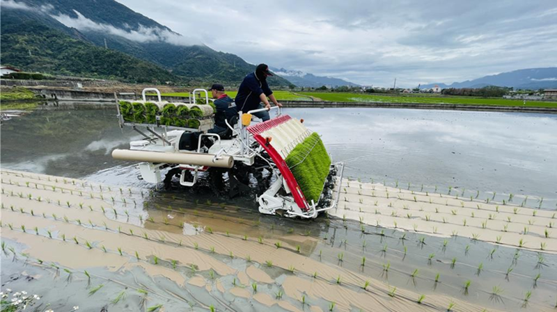 台東區農業改良場4日於關山鎮辦理「水稻紙膜插秧」示範觀摩會,藉由專用插秧機在插秧時,同步將有機紙膜覆蓋田間,抑制雜草生長,減輕人力除草負擔。不過慣行農法農友興趣不高,認為紙膜機具成本與田間條件門檻較高;嘗試有機農法的農友則直言「省工就是賺」,不排除導入。
